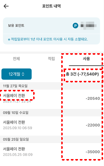 • 적립된 포인트는 서울페이+로 전환되어 카페, 편의점, 서점 등 제휴 매장에서 현금처럼 사용할 수 있습니다.