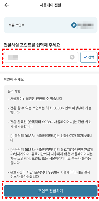 손목닥터 9988 포인트 사용법 - 서울페이+ 전환