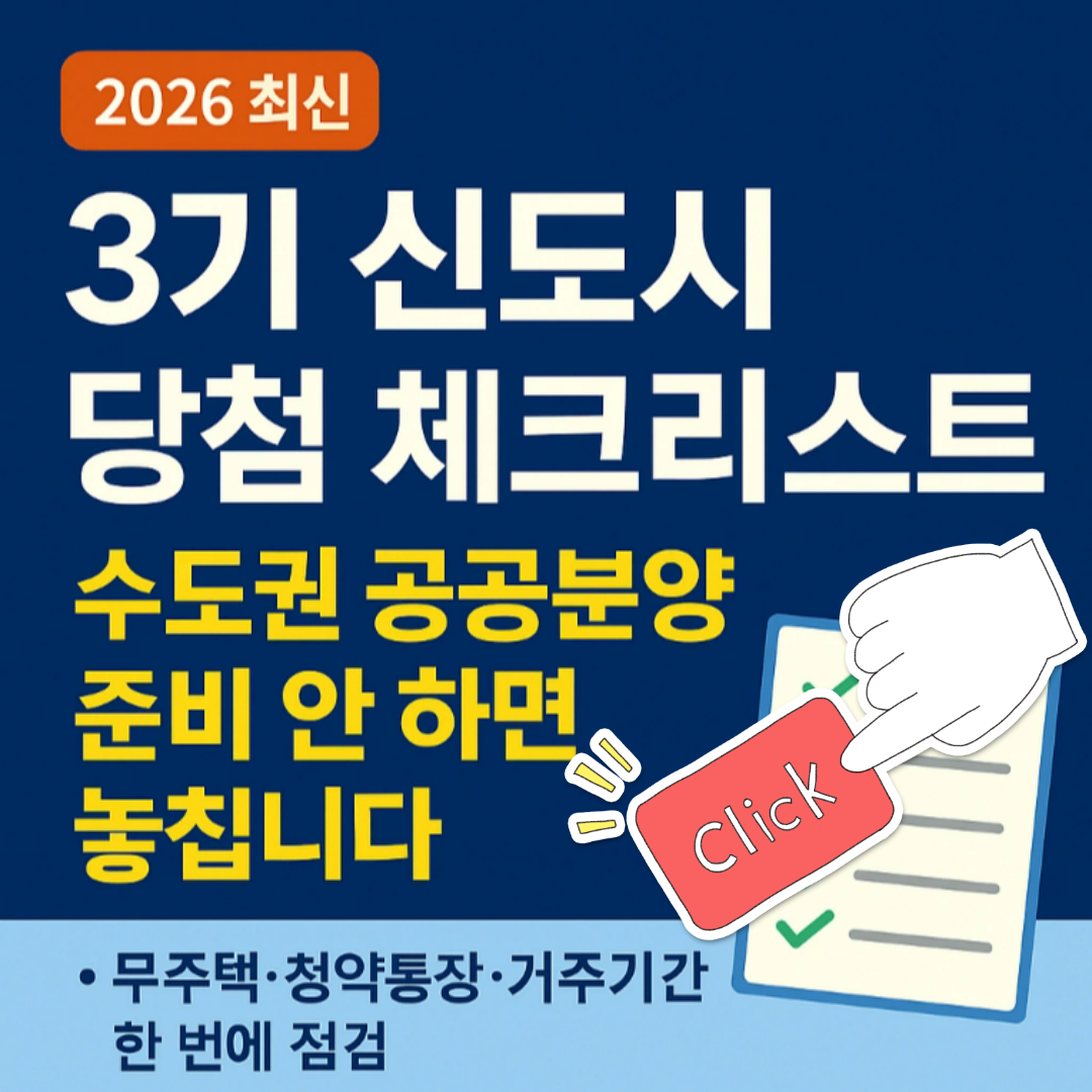 2026년 수도권 공공분양 물량이 역대급으로 쏟아집니다. 이 글에서는 수도권 공공분양 청약 준비 체크리스트부터 무주택·청약통장·거주기간·특별공급 조건까지, 실수요자가 꼭 알아야 할 3기 신도시 당첨 확률 높이는 법을 정리했습니다.이번 기회에 내 집 마련 전략을 처음부터 끝까지 점검해 보세요. “내 월세·전세 탈출, 이번 수도권 공공분양에서 끝내고 싶다면 꼭 읽어보세요.” 👉 수도권 공공분양 공급계획 바로가기 ➡️ 지금 수도권 공공분양을 노려야 하는 이유소제목 2-->정부는 내년 수도권 공공택지에서 총 2만 9000가구 규모의 공공분양주택을 공급하겠다고 발표했습니다. 서울 1300호, 인천 3600호, 경기 2만 3800호 수준으로, 판교급 신도시 하나를 새로 조성한 것과 비슷한 규모라고 설명하고 있어..